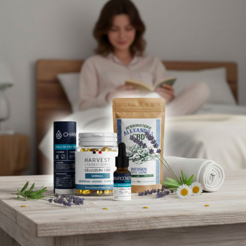 Si vous aimez explorer d’autres options autour du soir, vous pouvez aussi parcourir les huiles CBD pensées pour la routine sommeil ou la sélection tisanes & infusions CBD.
